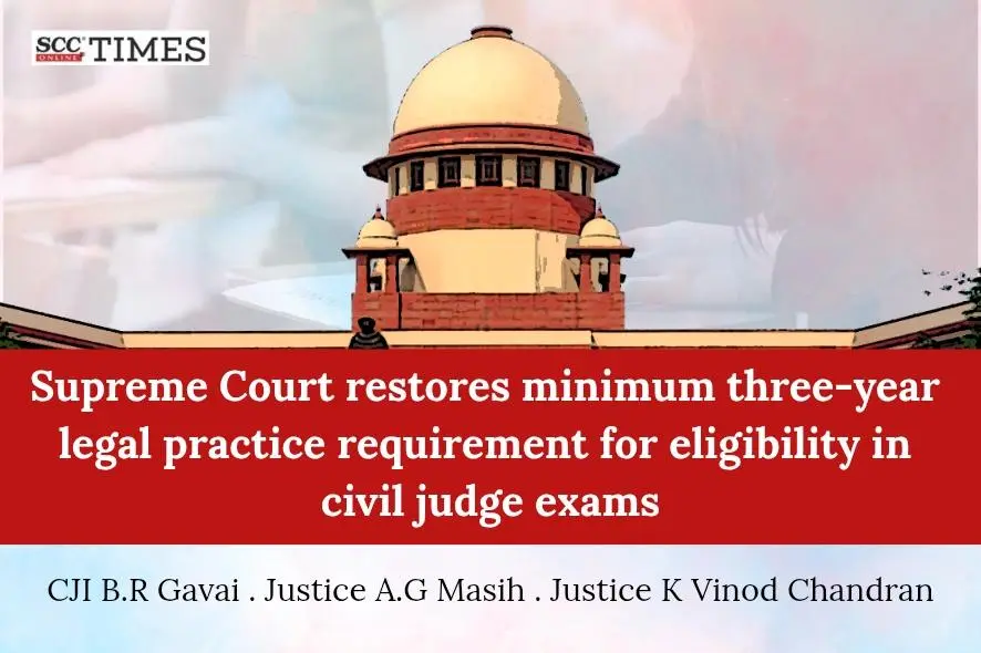 On the date of 20th May 2025, the Supreme Court of India under the bench of Chief Justice of India Justice Mr. Bhushan Ramkrishna Gavai, Justice Augustine George Masih and Justice Krishnan Vinod Chandran held that the aspiring students for the examination of civil judge (junior division) must go on a period of 3-years legal practice before appearing in the examinations. This verdict of the Supreme Court was directed to be amended as quickly as possible to all the High Courts of India.