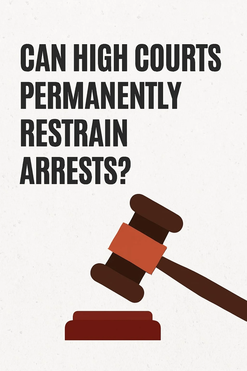 Whether a High Court can issue a permanent order restraining the arrest of an individual is a nuanced question lying at the crossroads of constitutional safeguards, statutory authority, and judicial interpretation. While High Courts possess wide inherent powers under Article 226 of the Constitution of India and Section 482 of the Code of Criminal Procedure, 1973 (now Section 528 of the Bharatiya Nagarik Suraksha Sanhita, 2023 — BNSS), judicial consensus has long maintained that such powers do not extend to granting blanket or permanent immunity from arrest.