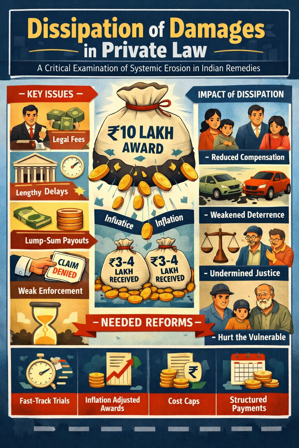 Dissipation of damages highlights a serious remedial failure in private law. Although courts may award compensation, a large part of it often disappears due to legal costs, long delays, inflation, and enforcement difficulties. As a result, victims do not receive meaningful relief, and monetary awards fail to achieve their basic purpose of restoring the injured party or correcting the wrong.