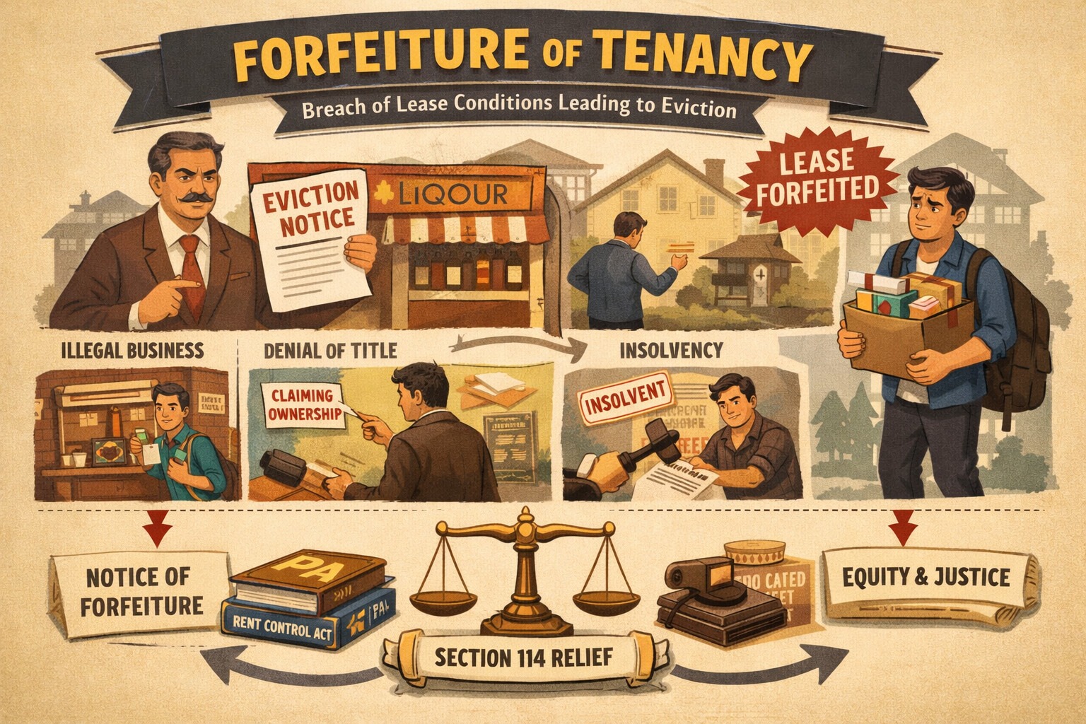 Indian law permits forfeiture of tenancy only in clear and serious cases of breach, and even then, it is surrounded by strict safeguards to prevent misuse. Forfeiture requires an express condition in the lease allowing re-entry, followed by mandatory written notice from the landlord. The tenant is further protected through the principles of waiver (where the landlord’s conduct, such as accepting post-breach rent, may forfeit his right to evict) and equitable relief from courts, especially in cases of non-payment of rent. In areas governed by Rent Control Acts, these protections become even stronger, often overriding general TPA provisions and allowing eviction only on specific statutory grounds. Overall, the framework carefully balances the landlord’s right to enforce the lease with robust safeguards that prioritize fairness, equity, and protection for tenants against arbitrary eviction.
