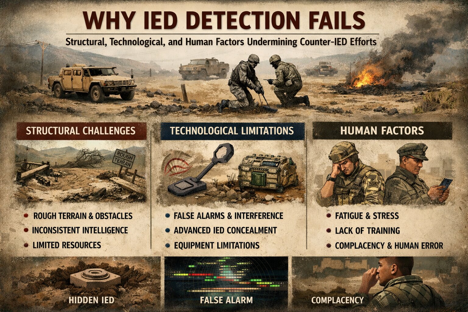 Failures in IED detection are rarely accidental. They are the predictable outcome of systemic weaknesses—technological blind spots, human limitations, intelligence gaps, environmental constraints, and institutional inertia. IEDs succeed not because detection systems do not exist, but because they are not integrated, updated, or intelligently employed.