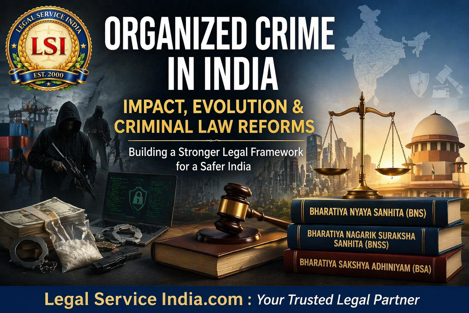 Organized crime in India has evolved into a complex challenge that undermines social stability, economic growth, and governance structures. Despite numerous legislative frameworks and enforcement mechanisms, criminal networks continue to thrive through activities such as trafficking, smuggling, cybercrime, money laundering, and illicit trade. These activities not only erode public trust in institutions but also create deep socio-economic repercussions, including loss of revenue, increased corruption, and exploitation of vulnerable communities. In response, the Indian legal system has undergone significant criminal law reforms, with the objective of enhancing deterrence, strengthening investigative powers, and ensuring faster judicial processes.