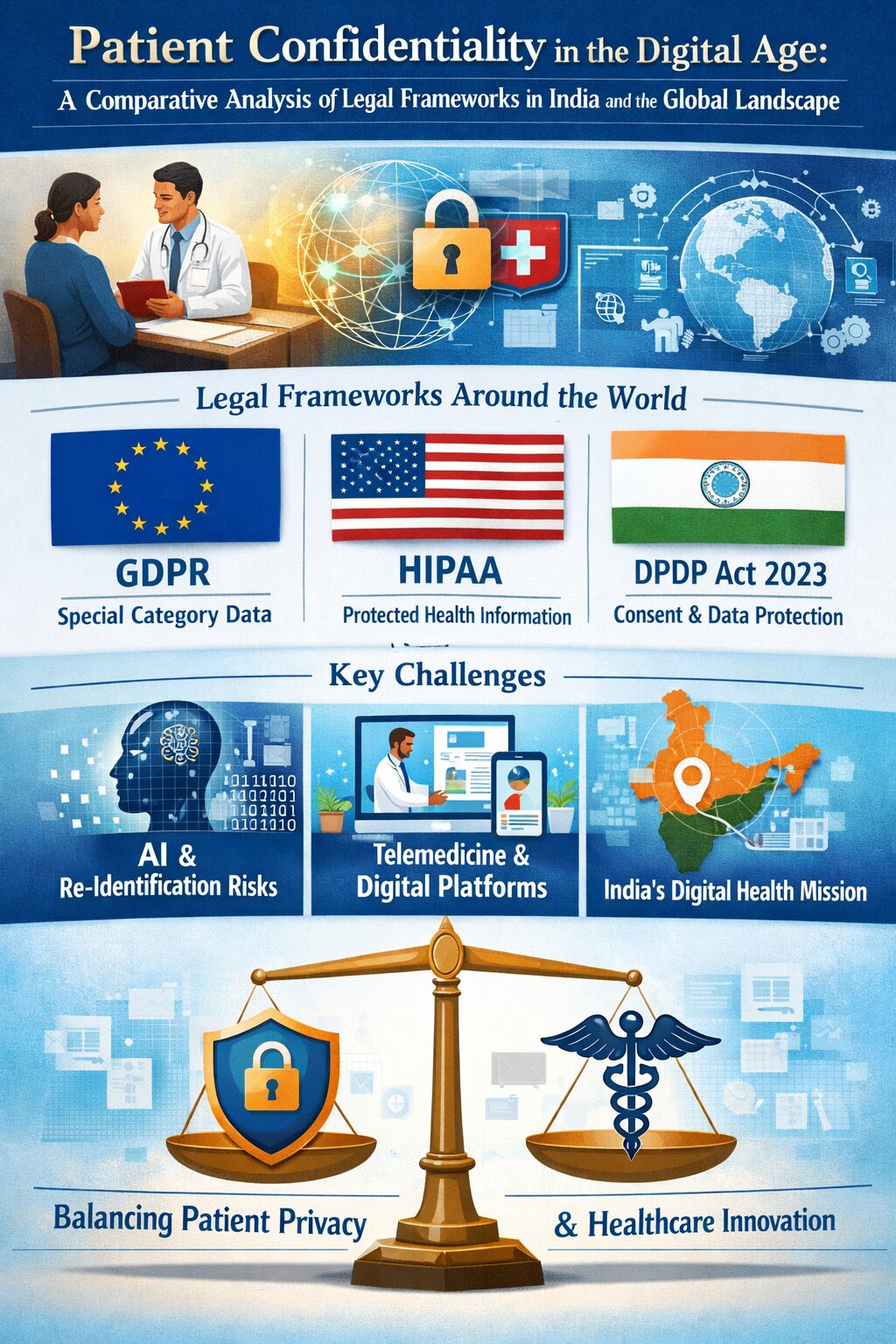 With the growth of digital health records and online medical services, it has become necessary to protect personal health data through clear laws. In India, the Digital Personal Data Protection Act, 2023 provides the main legal framework for protecting personal data, including medical information.