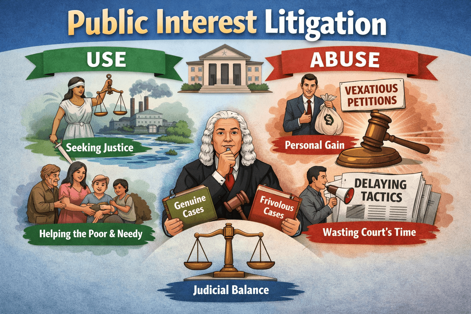 response andPublic Interest Litigation, popularly known as “PIL”, is a legal mechanism that has revolutionized the concept of justice. It enables public spirited individuals or organizations to raise issues having broader societal implications. It seeks to protect fundamental rights and promote social justice. Unlike traditional legal proceedings that involve private disputes, PIL focuses on matters of public concern. The traditional litigation system was characterized by rigid procedural rules that often hindered access to justice, especially for marginalized communities. PIL emerged as a response made the system more accessible and responsive to the needs of society.